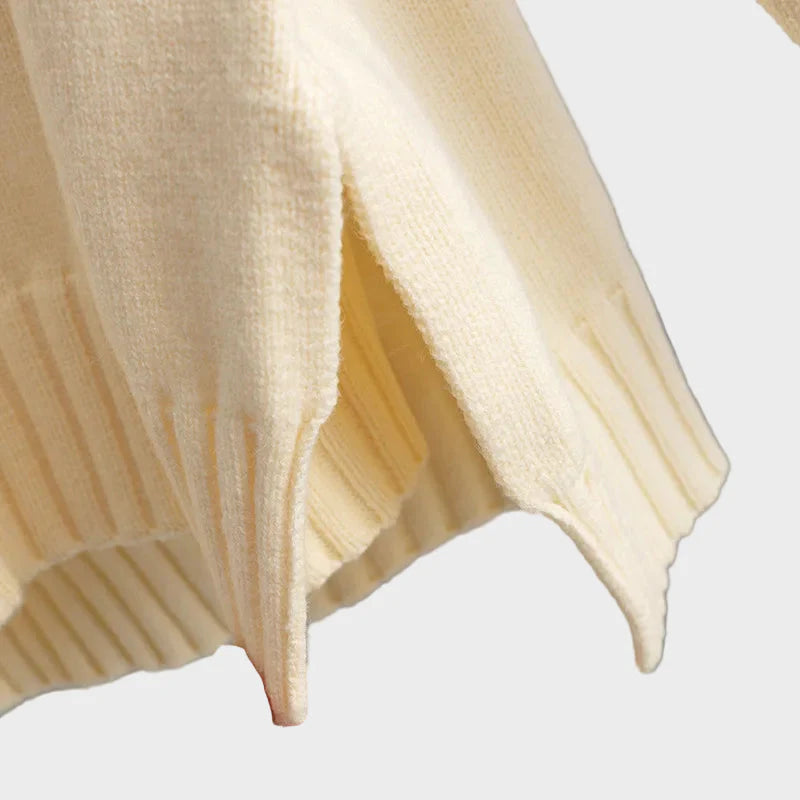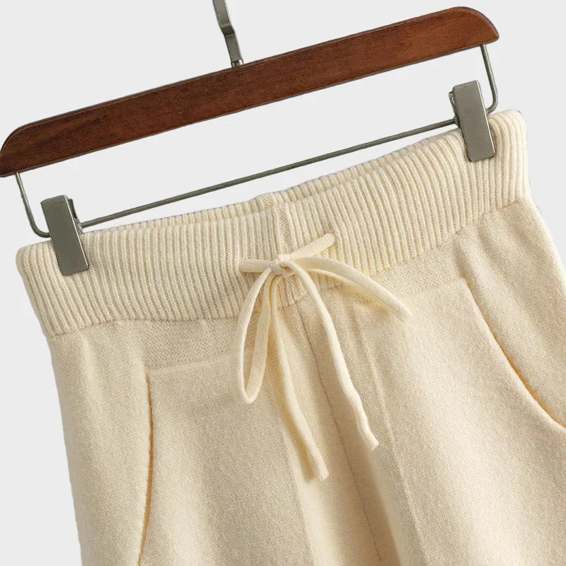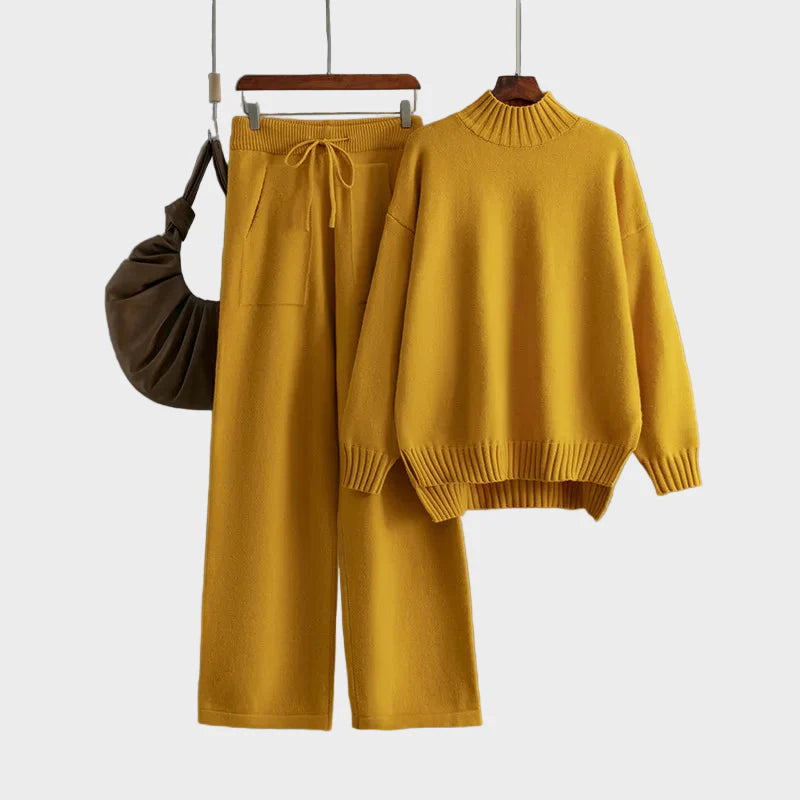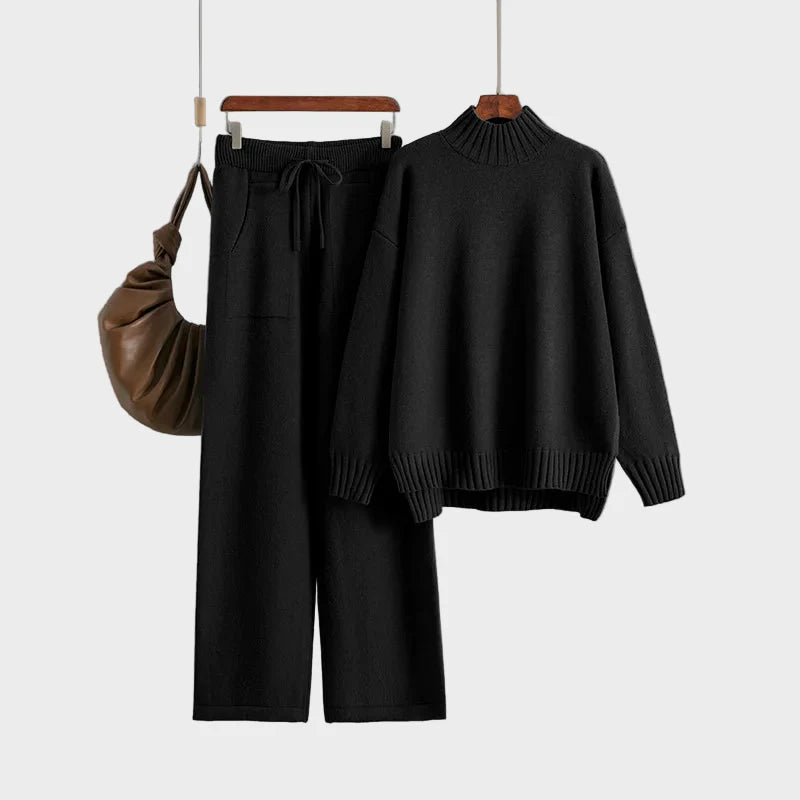 Sastoji se od fine pletene dolčevite i odgovarajućih hlača širokih nogavica, koje zajedno stvaraju besprijekoran chic izgled.